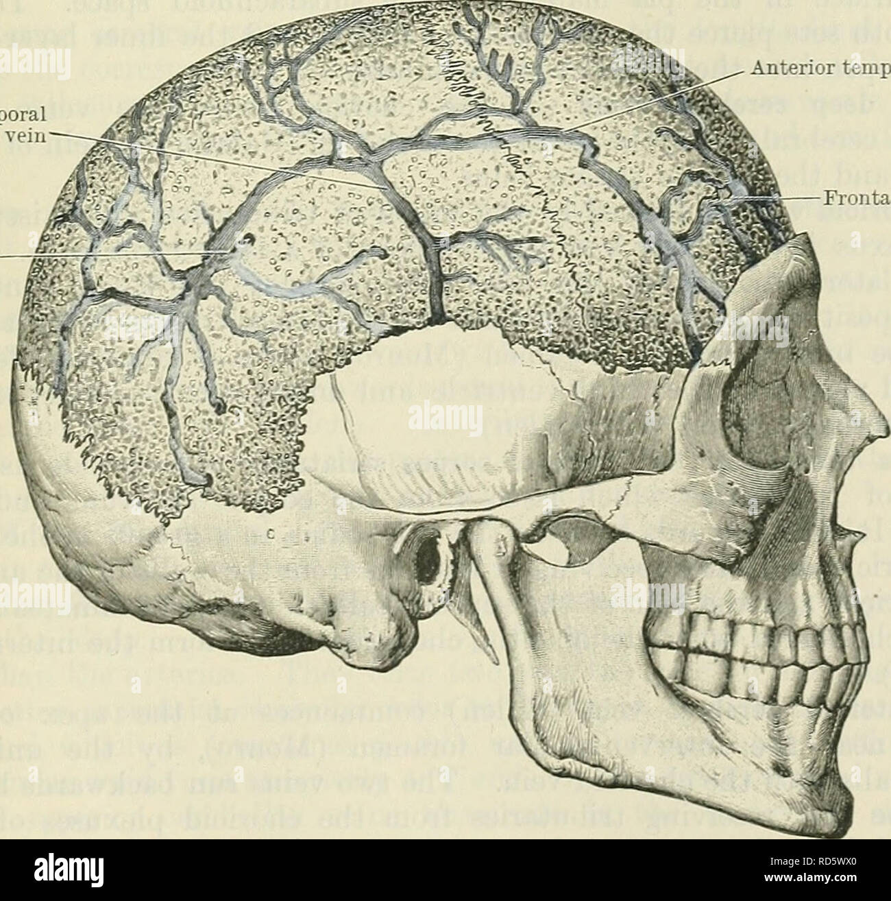 Vintage illustration of anatomy, human brain transversal section into the skull, anatomical descriptions in Italian Stock Illustration | Adobe Stock