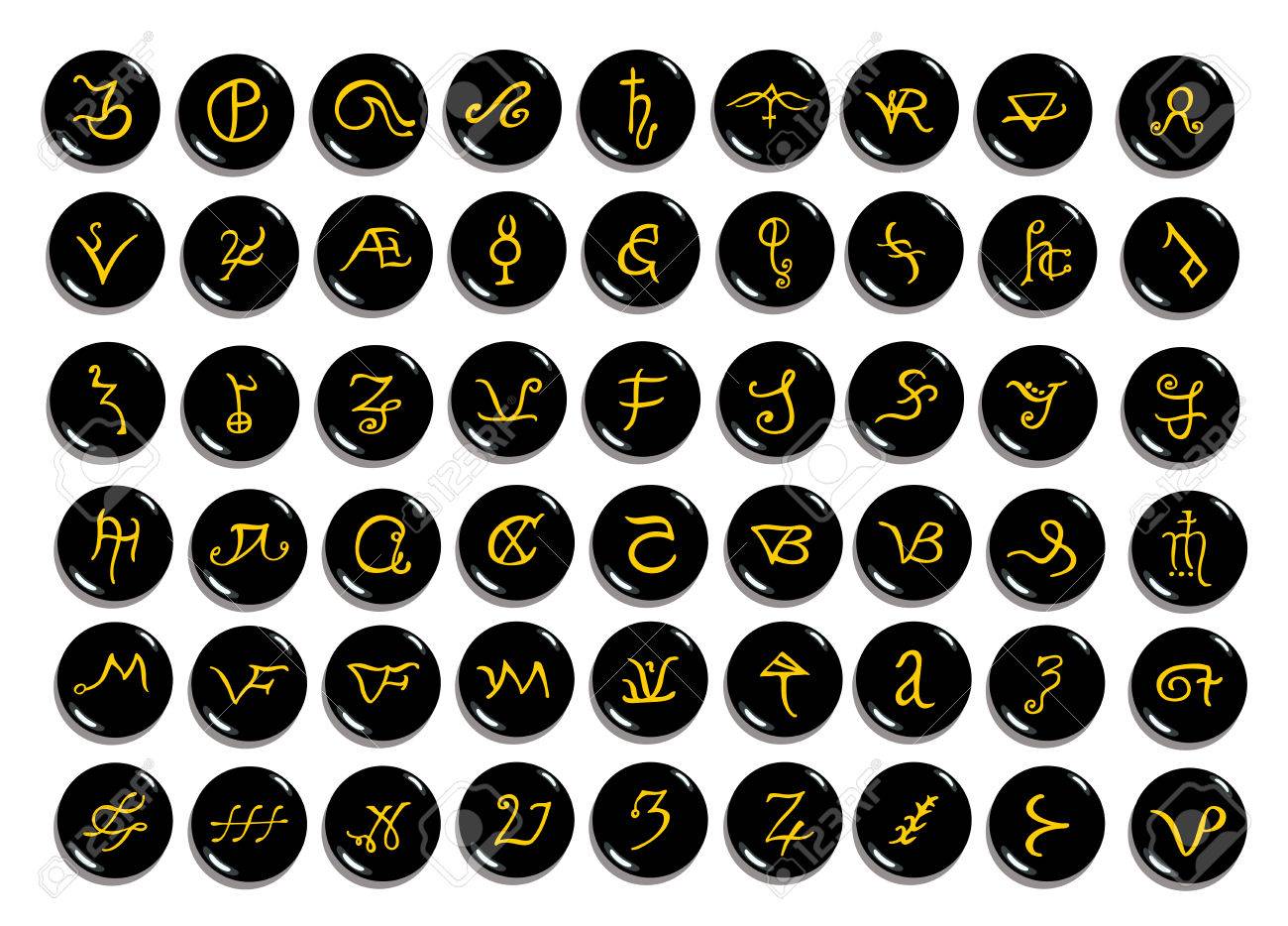 SVG, Vettoriale - Un Insieme Di Simboli Alchemici Dorati Scolpita Sulla Pietra Isolata On White. Elementi Disegnati A Mano Per Il Design. Tema Mistico, Esoterico, Occulto.. Image 74783580