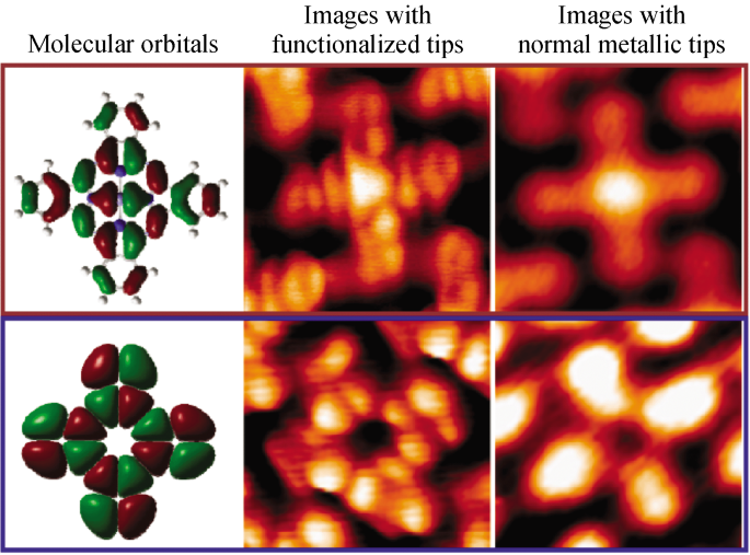 Direct imaging of molecular orbitals of metal phthalocyanines on metal surfaces with an O2-functionalized tip of a scanning tunneling microscope | SpringerLink