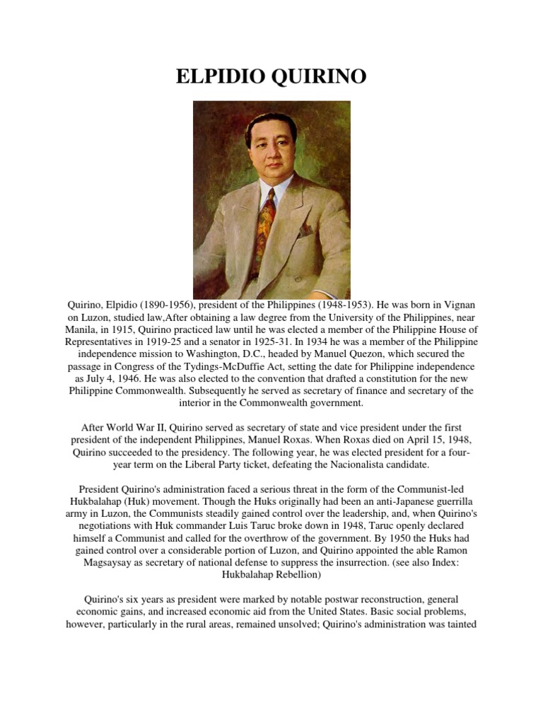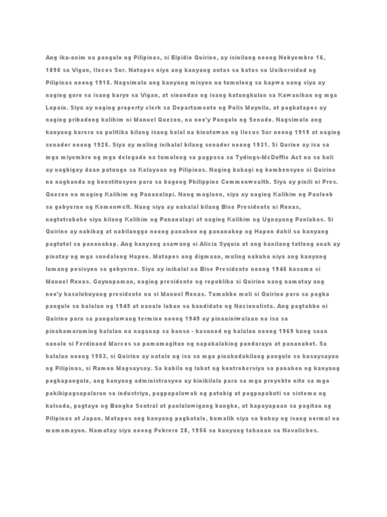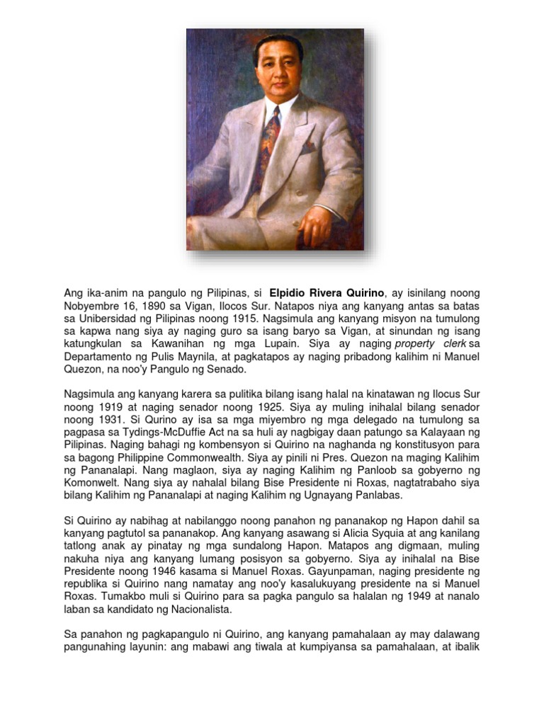Talambuhay Ni Pangulong Elpidio Quirino | PDF