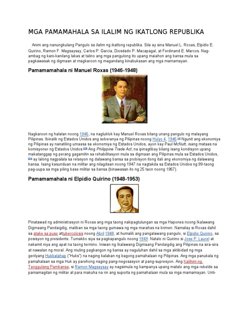 Ang Mga Pangulo NG Ikatlong Republika NG Pilipinas | PDF