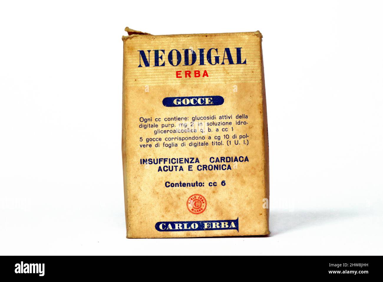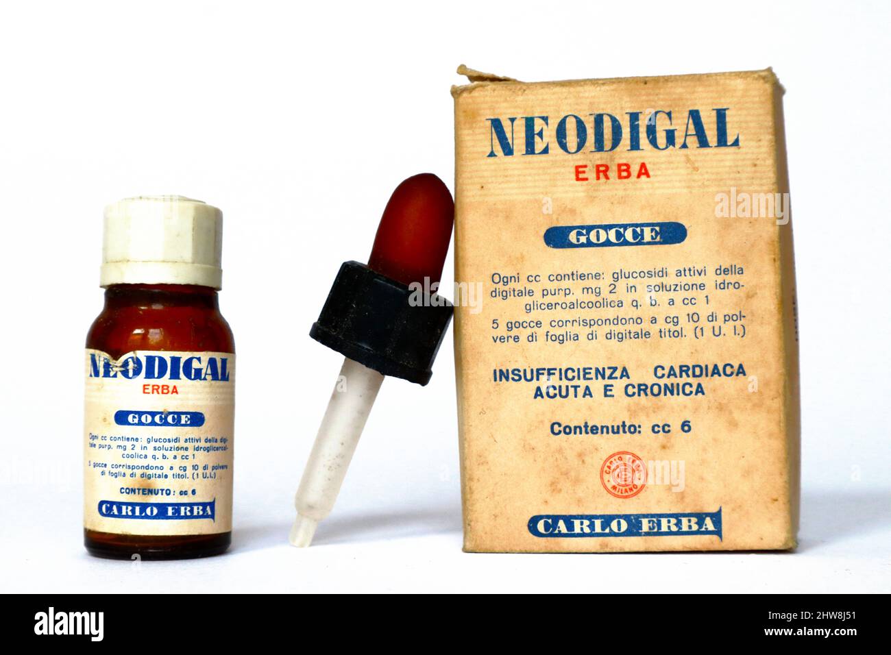 Vintage 1950s NEODIGAL ERBA, Drops medicine with Digitalis purpurea Purple Foxglove for the treatment of Heart failure. CARLO ERBA – Milan (Italy Stock Photo - Alamy