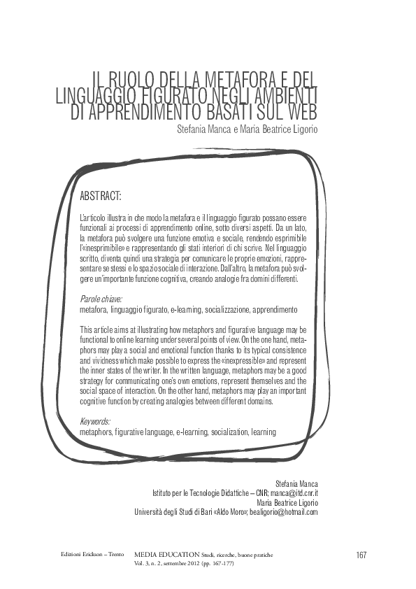 PDF) Il ruolo della metafora e del linguaggio figurato negli ambienti di apprendimento basati sul web | Stefania Manca and Beatrice Ligorio - Academia.edu