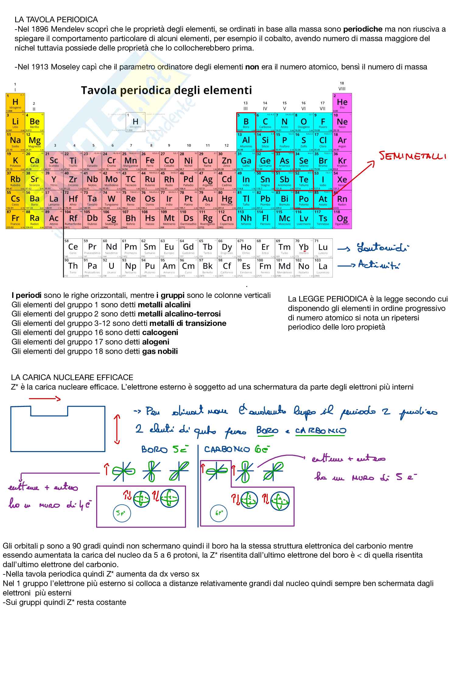 Riassunto tavola periodica degli elementi | Sintesi del corso di Chimica | Docsity