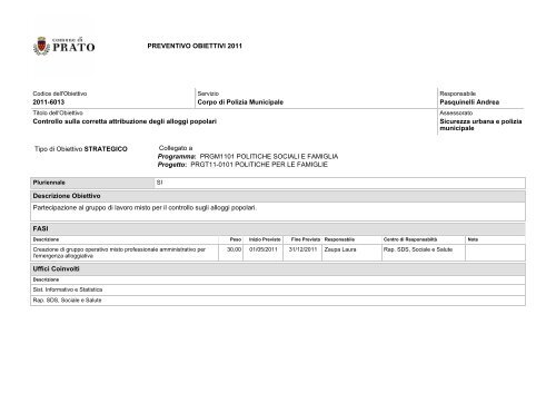 PEG, Piano Esecutivo di gestione: obiettivi 2011 - Comune di Prato