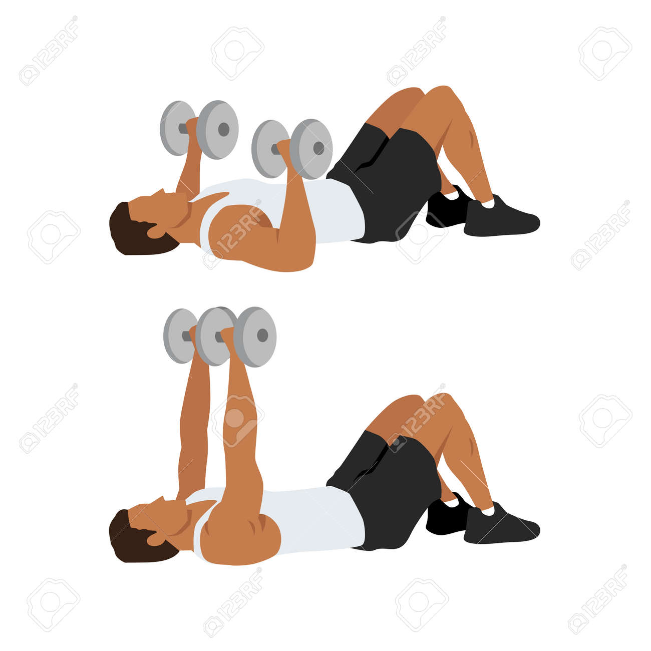 SVG, Vettoriale - Esercizio Di Pressatura Per Pettorali Con Manubri. Illustrazione Vettoriale Piatta Isolata Su Sfondo Bianco. Carattere Di Allenamento. Image 180125476
