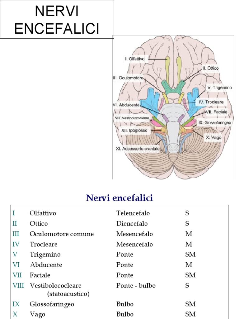 Nervi cranici: schema riassuntivo - neuroanatomia