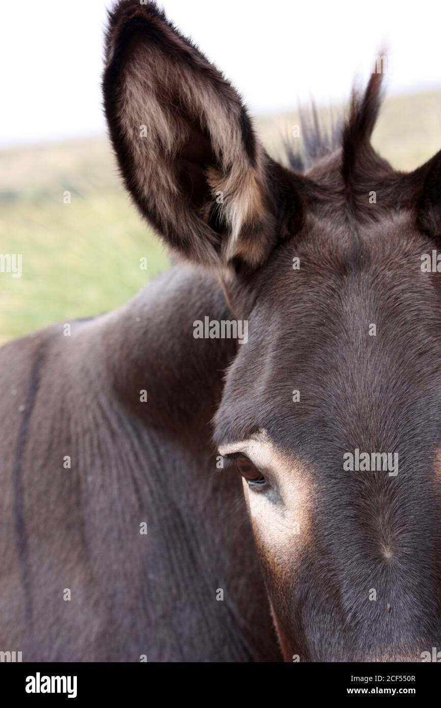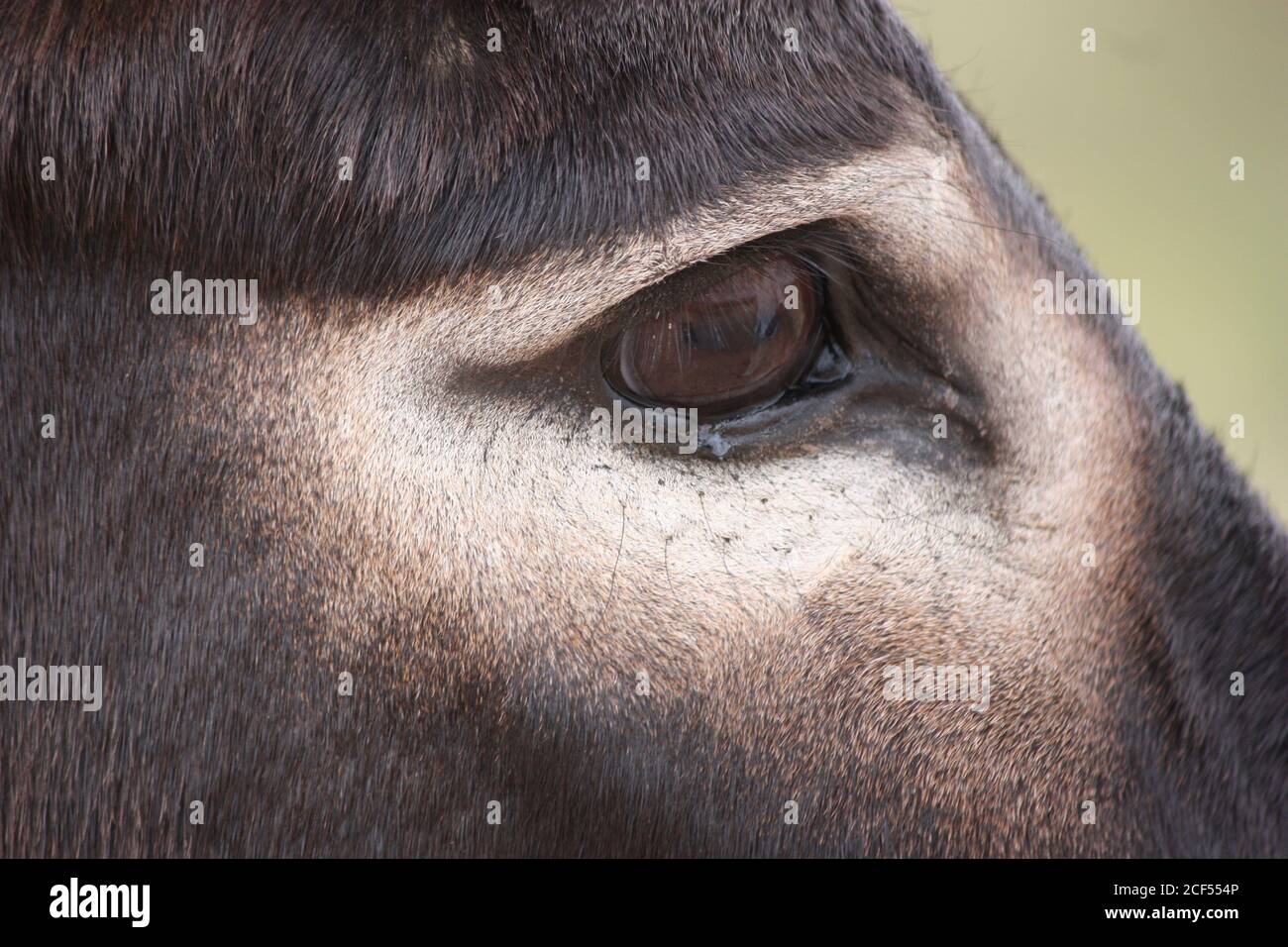 Ritratto di mulo marrone scuro con closeup di occhi teary, fronte e profilo Foto stock - Alamy