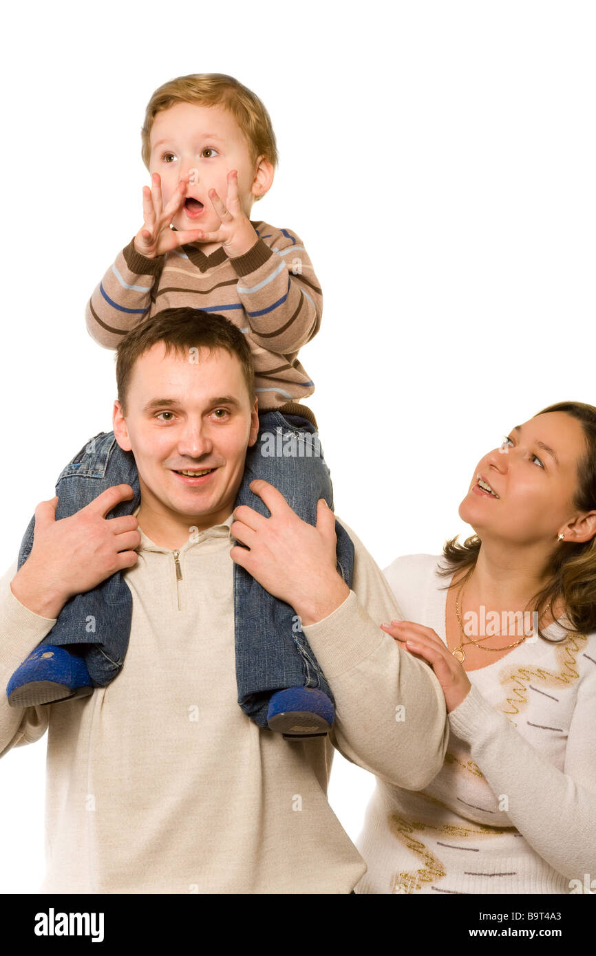 Famiglia da 3 persone isolate su sfondo bianco Foto stock - Alamy