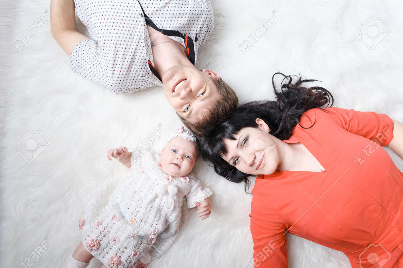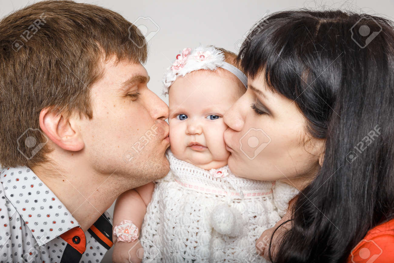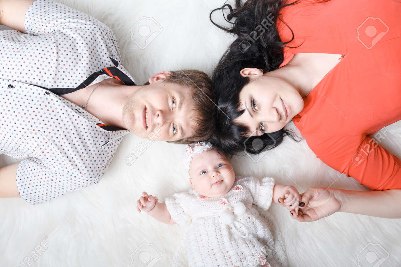 Young Beautiful Family Of 3 Persons Mum, Dad And Little Daughter Posing In The Studio Stock Photo, Picture and Royalty Free Image. Image 37544597.