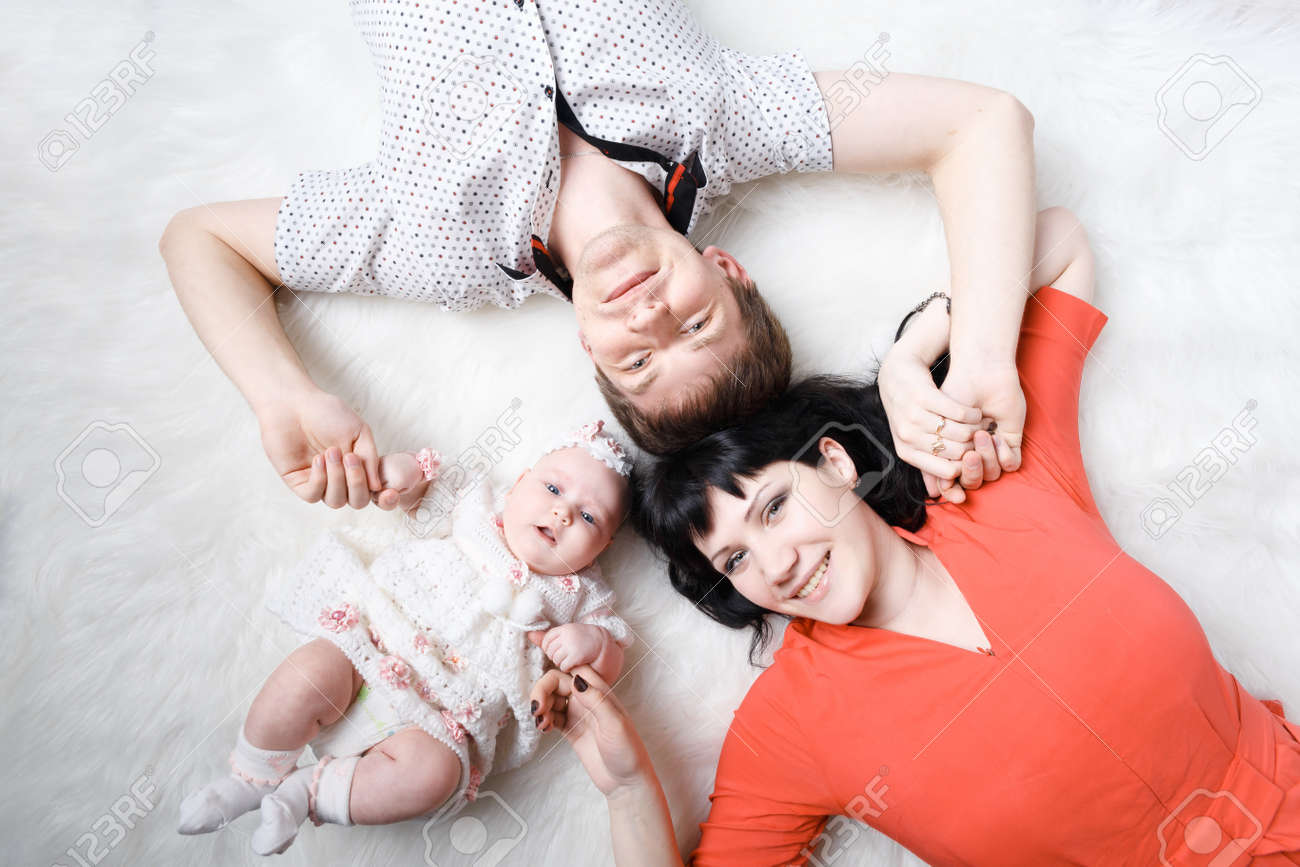 Young Beautiful Family Of 3 Persons Mum, Dad And Little Daughter Posing In The Studio On A White Background Stock Photo, Picture and Royalty Free Image. Image 16302442.
