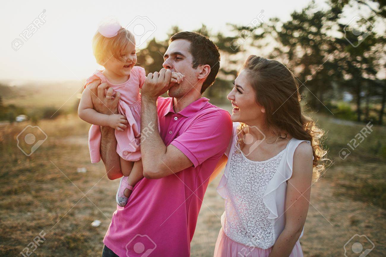 Immagini Stock - Bella Famiglia Di Tre Persone, Mamma Papà E Figlia. Image 47924425