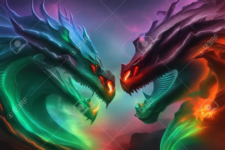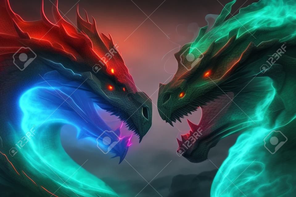 Immagini Stock - Due Draghi Sputafuoco. Draghi Che Combattono. Ai Generativo. Image 199595620