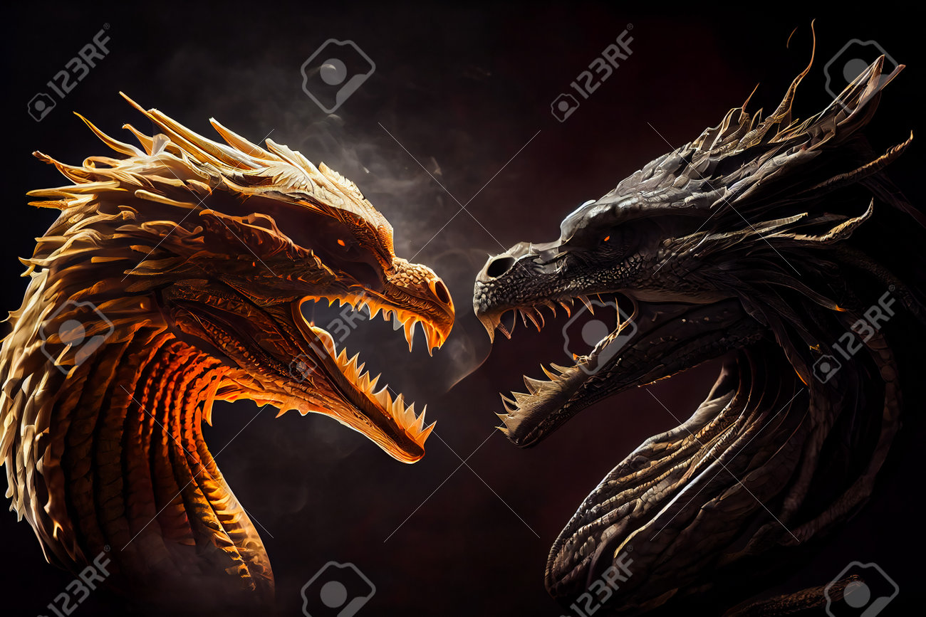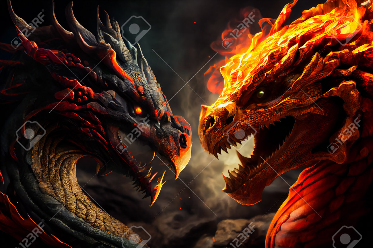 Immagini Stock - Due Draghi Sputafuoco. Draghi Che Combattono. Ai Generativo. Image 199621309