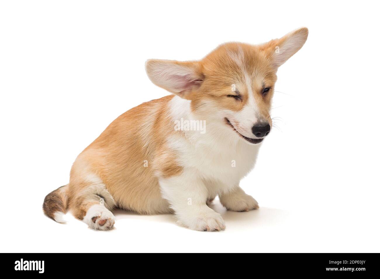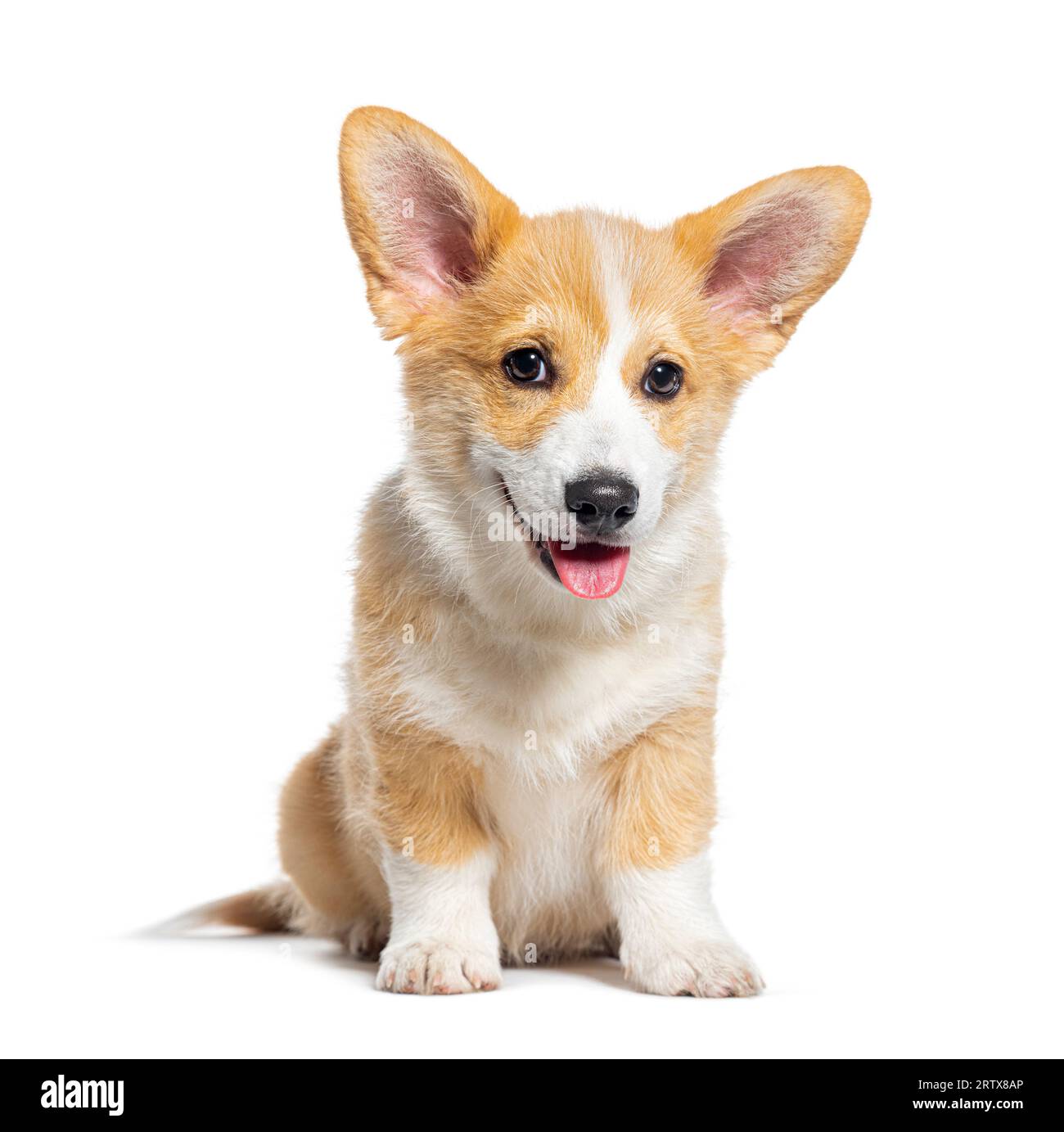 Cucciolo Di Pembroke Welsh Corgi Che Si Siede Nella Parte Anteriore Isolato Su Bianco Immagine Stock - Immagine di faccia, aperto: 59150573