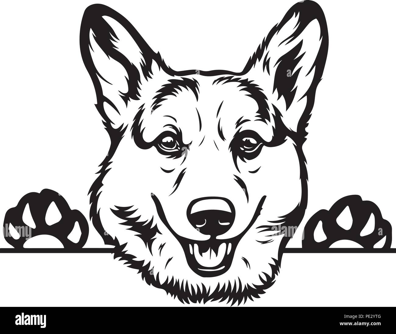 Pembroke Welsh Corgi Pedigree cane di razza testa Pet isolato ritratto sorride felice Faccia da cucciolo animale illustrazione Cartoon ritratto arte Artwork carino Immagine e Vettoriale - Alamy
