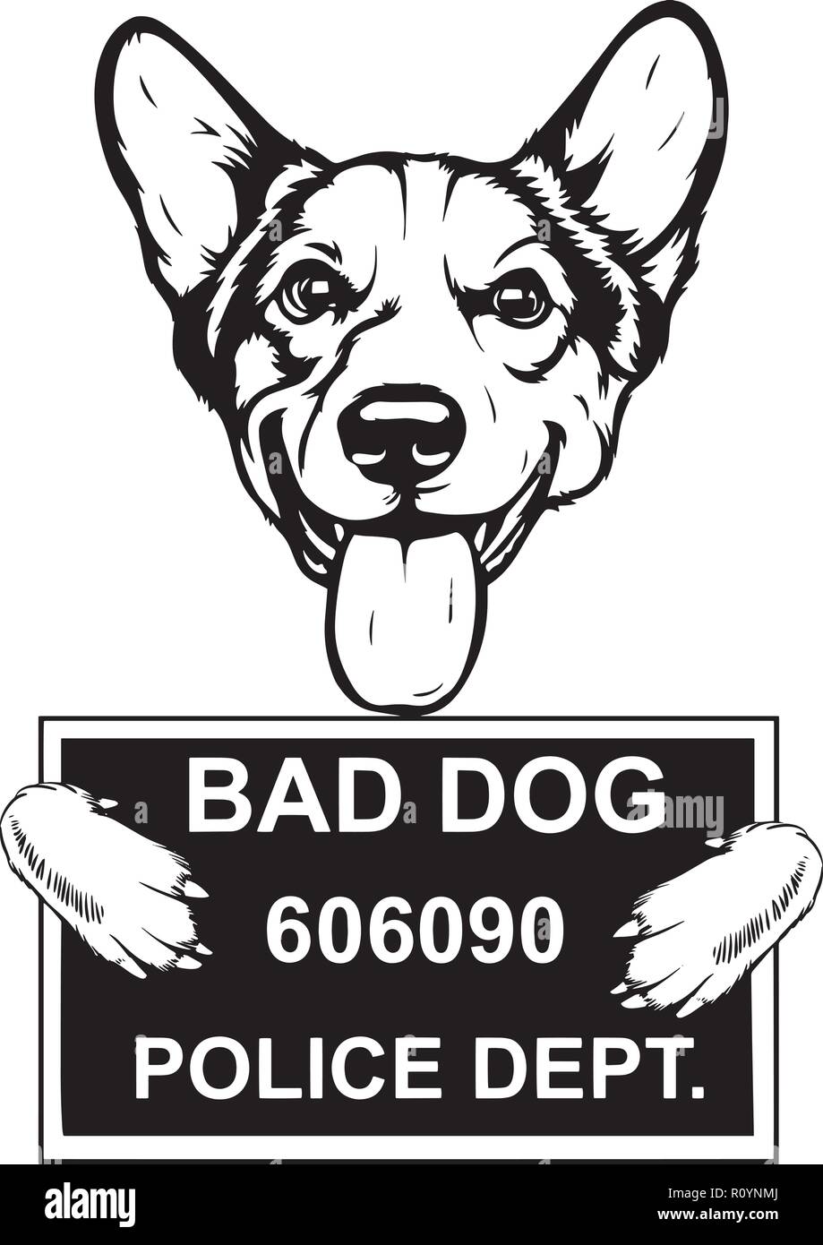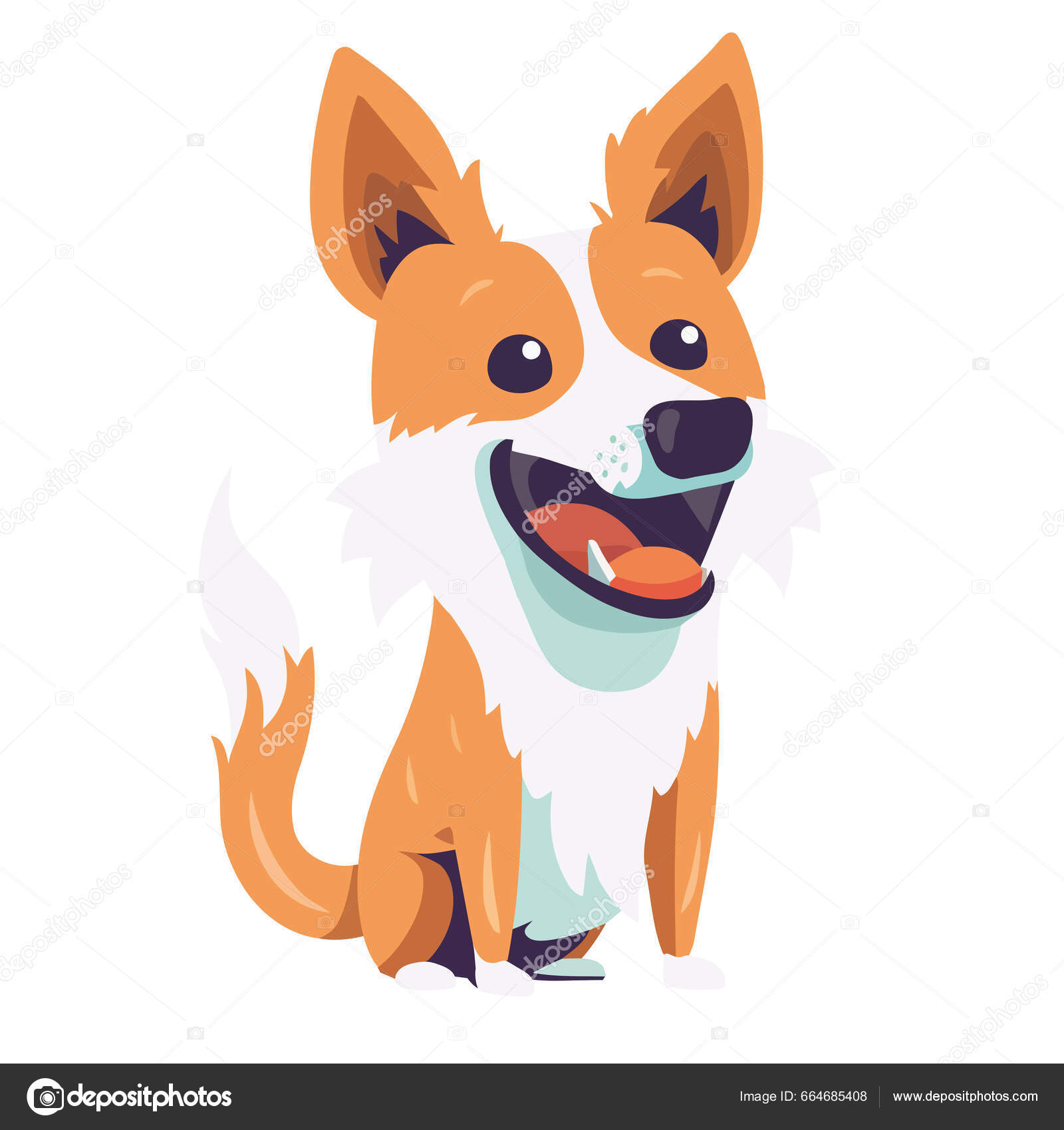 Vector cartoon clip art illustrazione di un simpatico e felice welsh corgi cane o cucciolo con la sua testa deformata da un lato, la bocca aperta Immagine e Vettoriale - Alamy