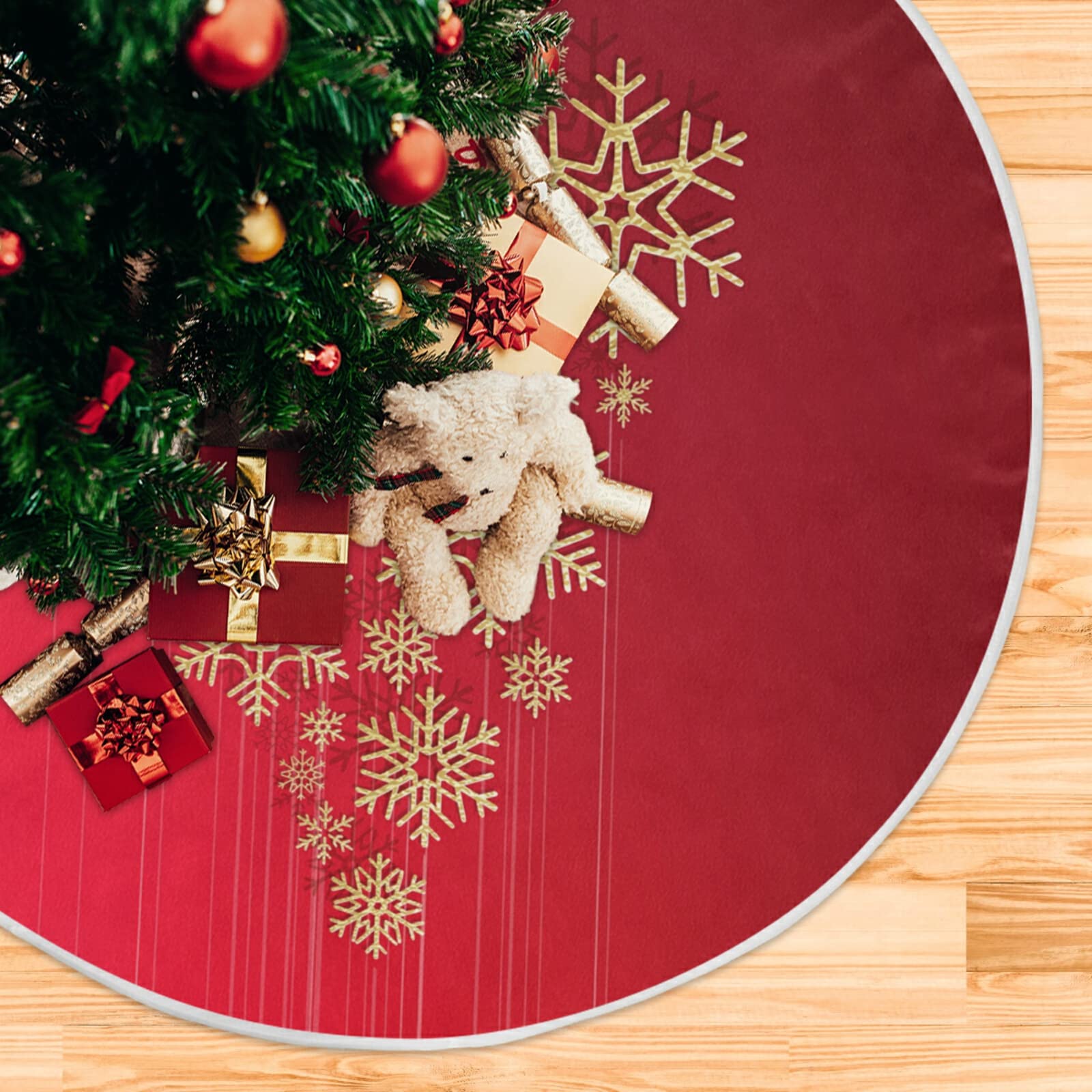 Gonna per albero di Natale, 47 pollici, gonna per albero di Natale per decorazioni natalizie, rosso Natale dorato scintillante fiocco di neve 5567 A1R635 : Amazon.it: Casa e cucina