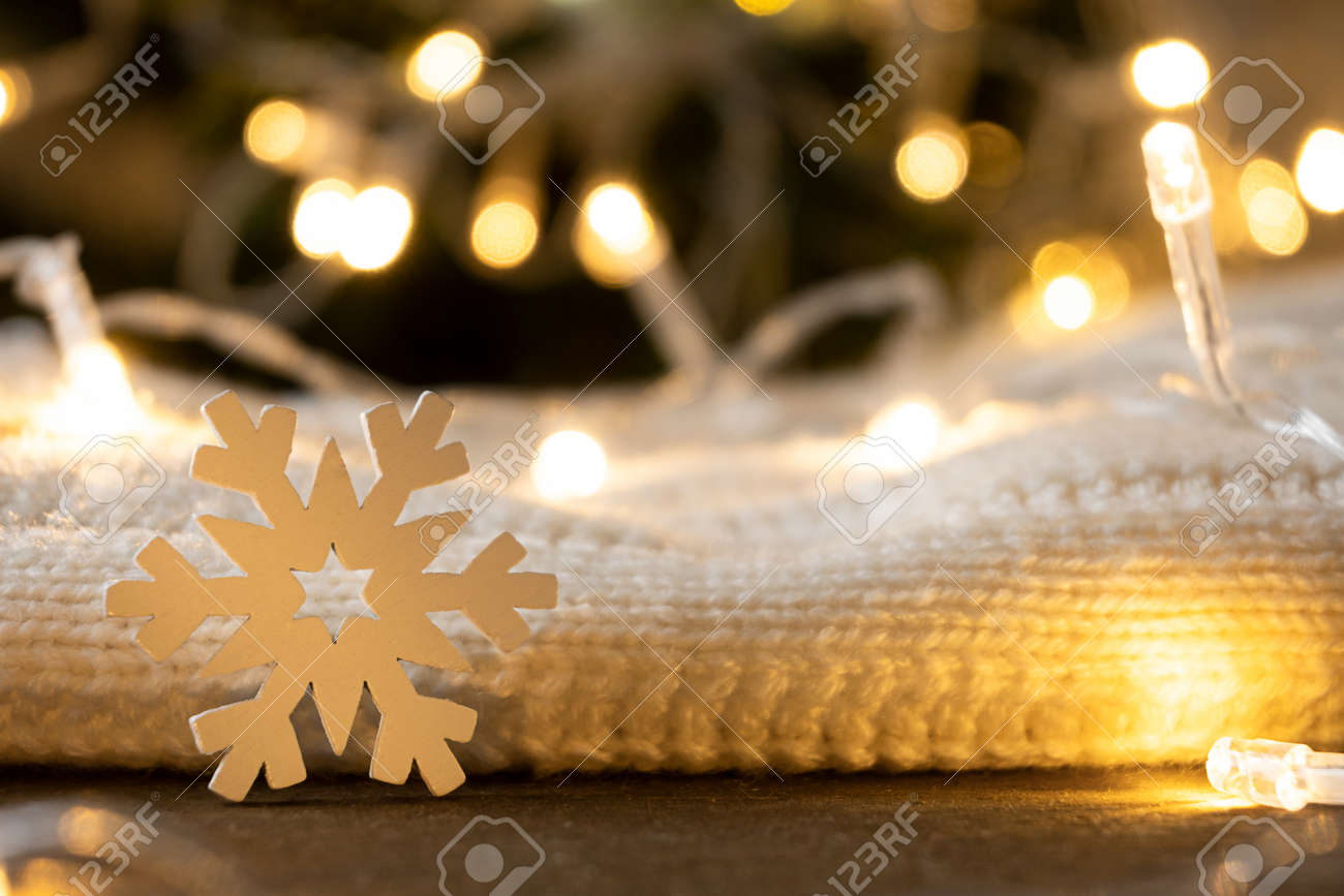 Immagini Stock - Fiocco Di Neve E Ghirlanda Di Natale. Bokeh Dorato E Spazio Di Copia.. Image 175909902
