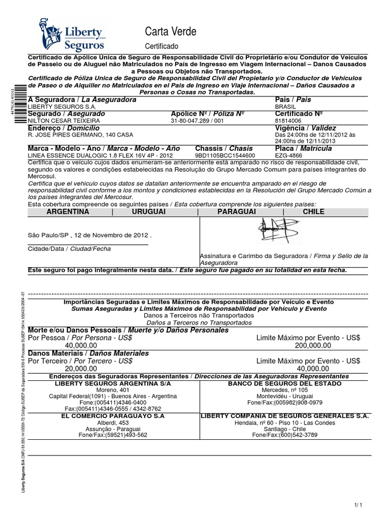 Carta Verde | PDF | Seguro | Servicios financieros