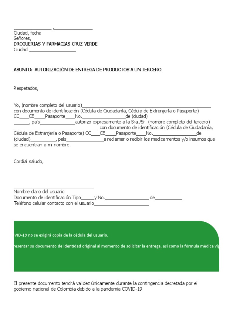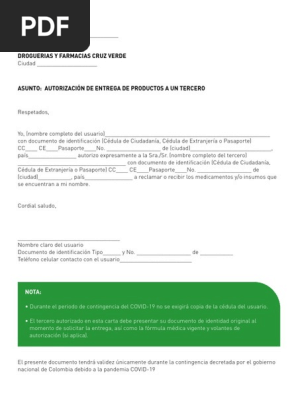 Cruz Verde FORMATO CARTA AUTORIZACION | PDF