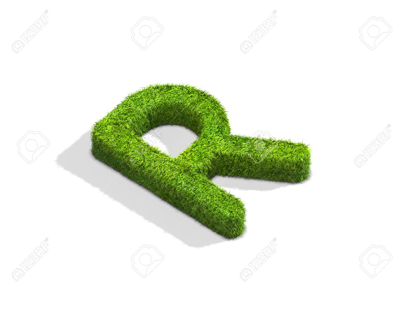 Carta De Hierba R Mayúscula En Formato De Ángulo Isométrica Con Sombra En El Suelo. Ilustración 3D Aislada En El Fondo Blanco. Fotos, retratos, imágenes y fotografía de archivo libres de derecho.