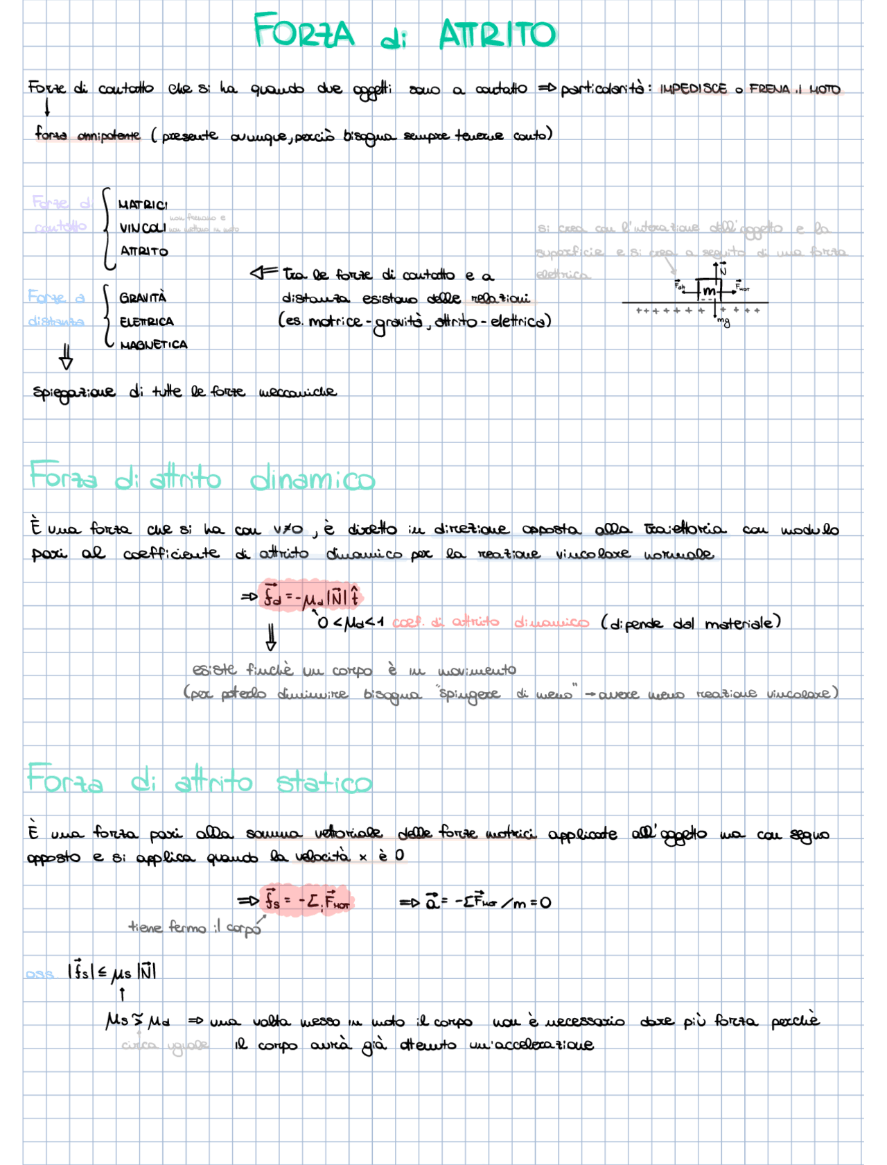 Appunti forza di attrito | Appunti di Fisica | Docsity
