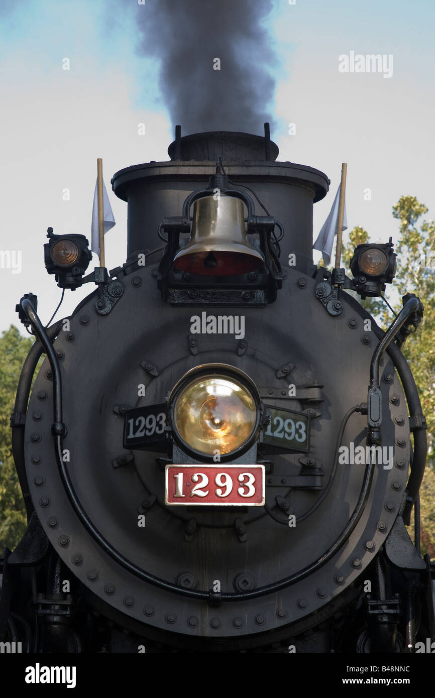Testa sulla vista di fronte della storica del carbone powered locomotiva a vapore n. 1293 sulla sua visita al Cuyahoga Valley National Park Foto stock - Alamy