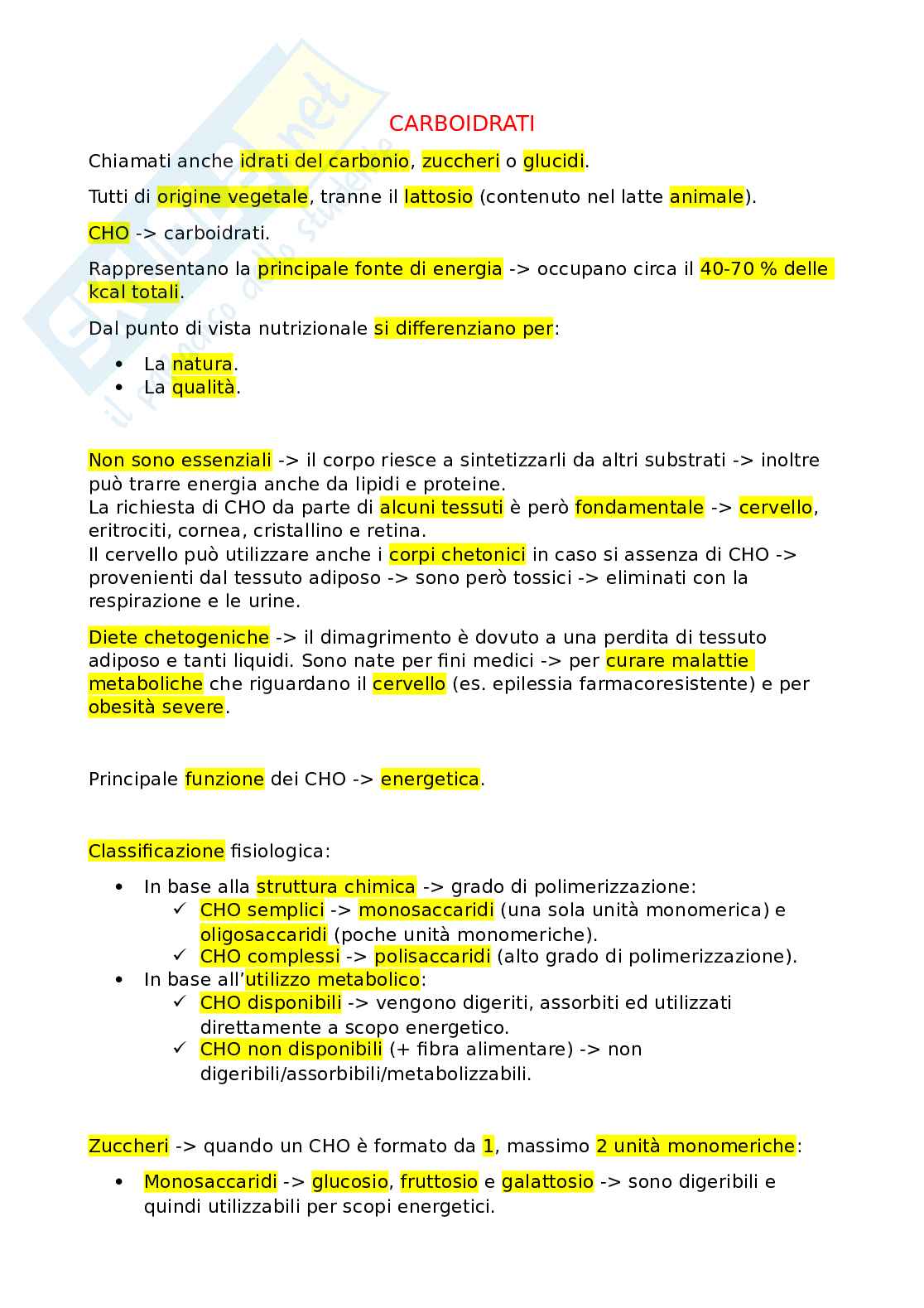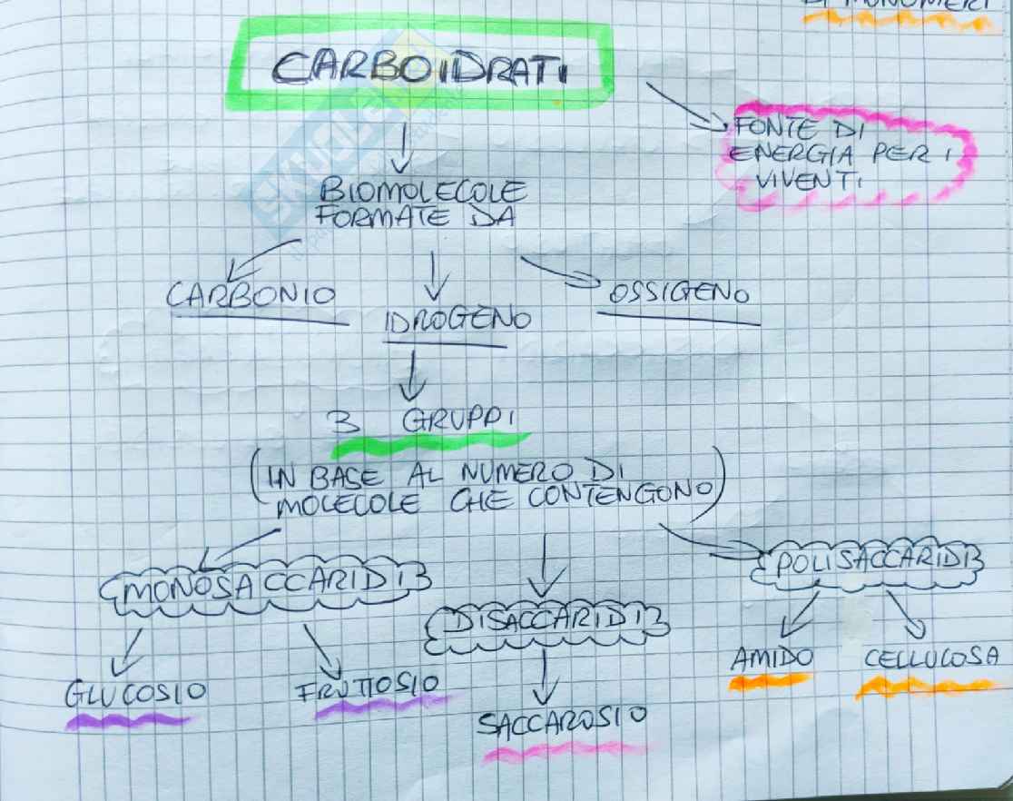 Mappa concettuale sui carboidrati: elenco schemi riassuntivi -