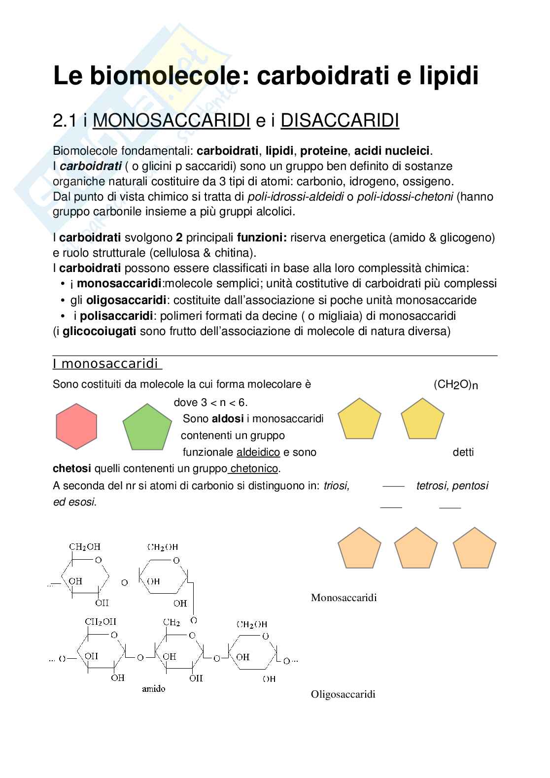 Monosaccaridi, polisaccaridi, carboidrati e lipidi