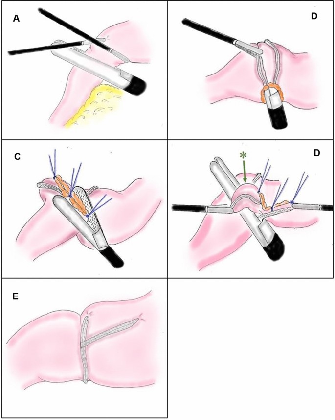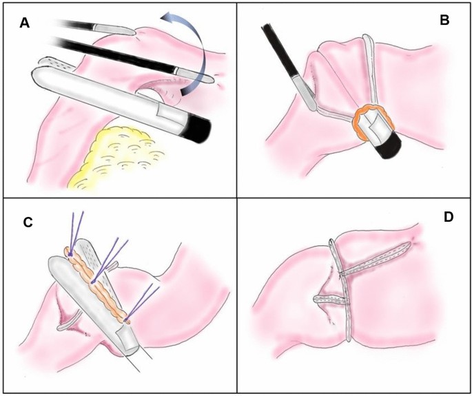 Illustration of delta-shaped anastomosis under laparoscopy.... | Download Scientific Diagram