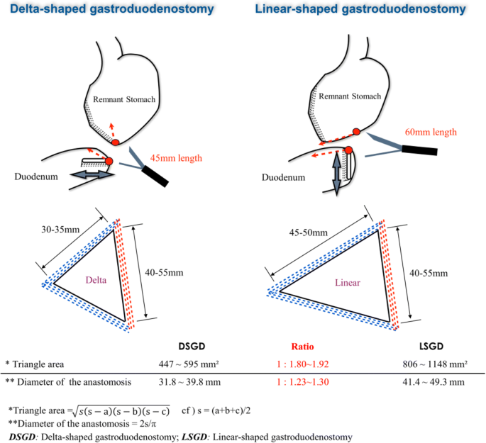 Gastric resection and intracorporeal delta-shaped gastroduodenostomy... | Download Scientific Diagram