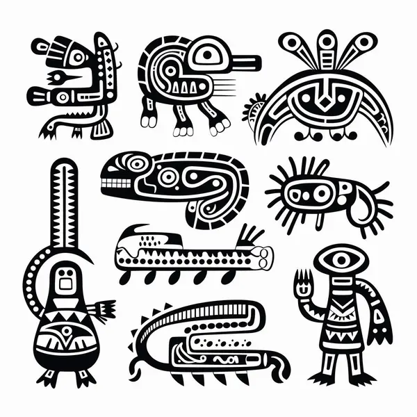 Vector Set Of Mayan And Aztec Glyphs With Ancient Gods And ...