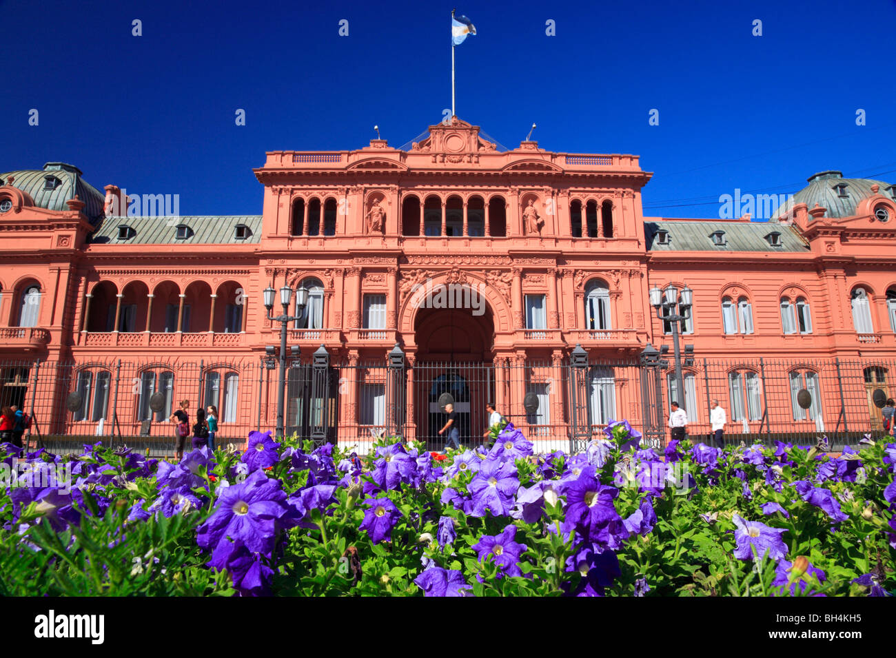Casa Rosa" (Governo Nazionale Palazzo presidenziale) con fiori. Plaza de Mayo Square, Buenos Aires, Argentina Foto stock - Alamy