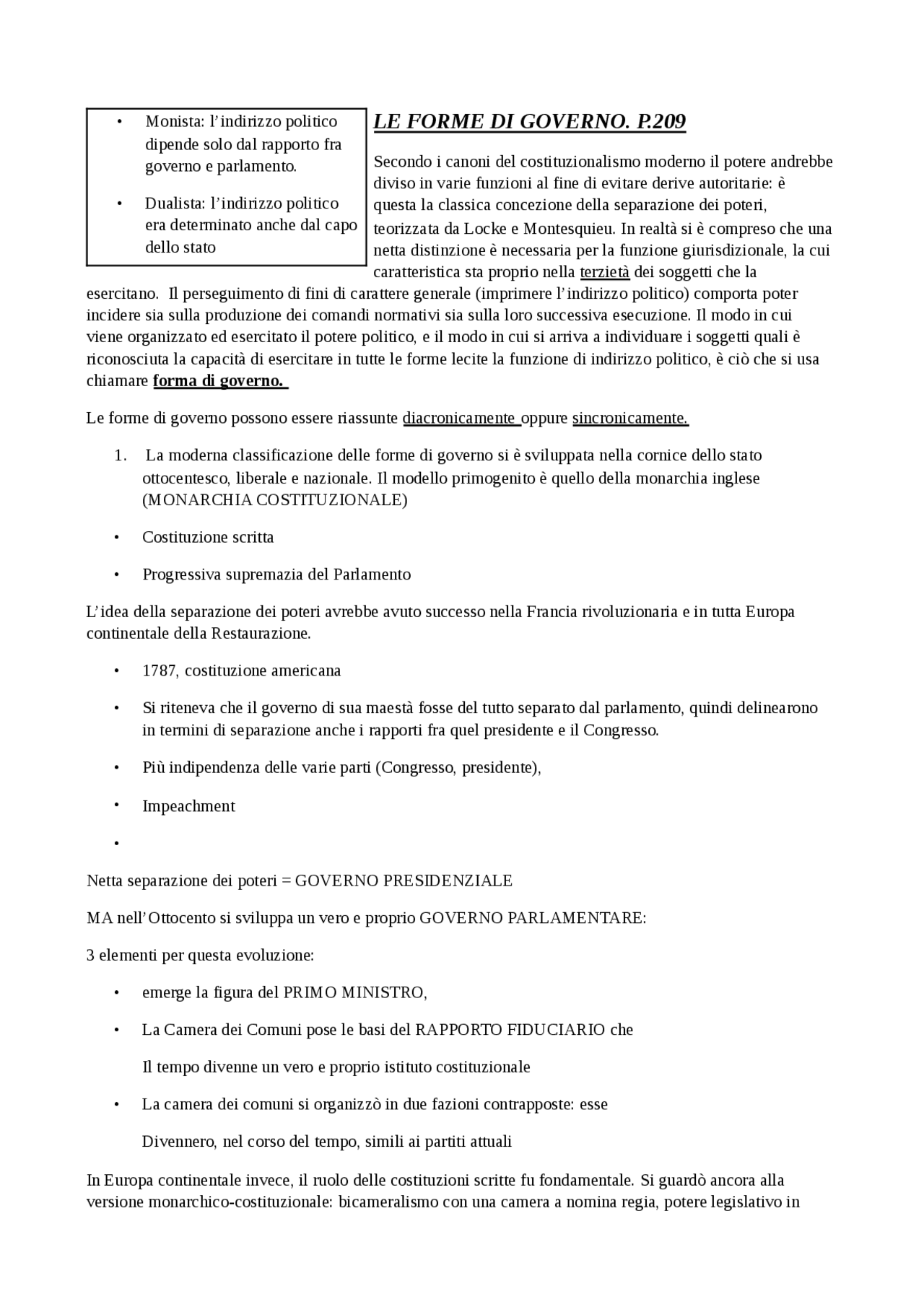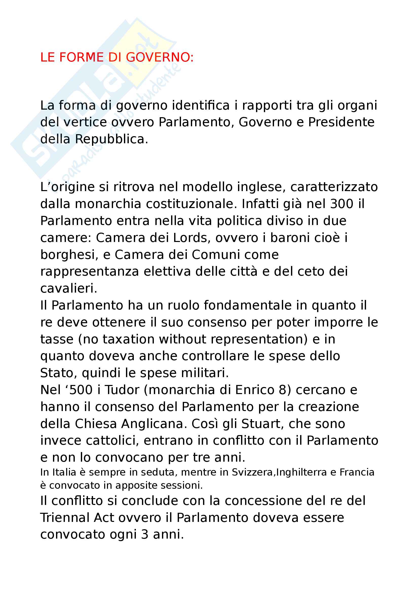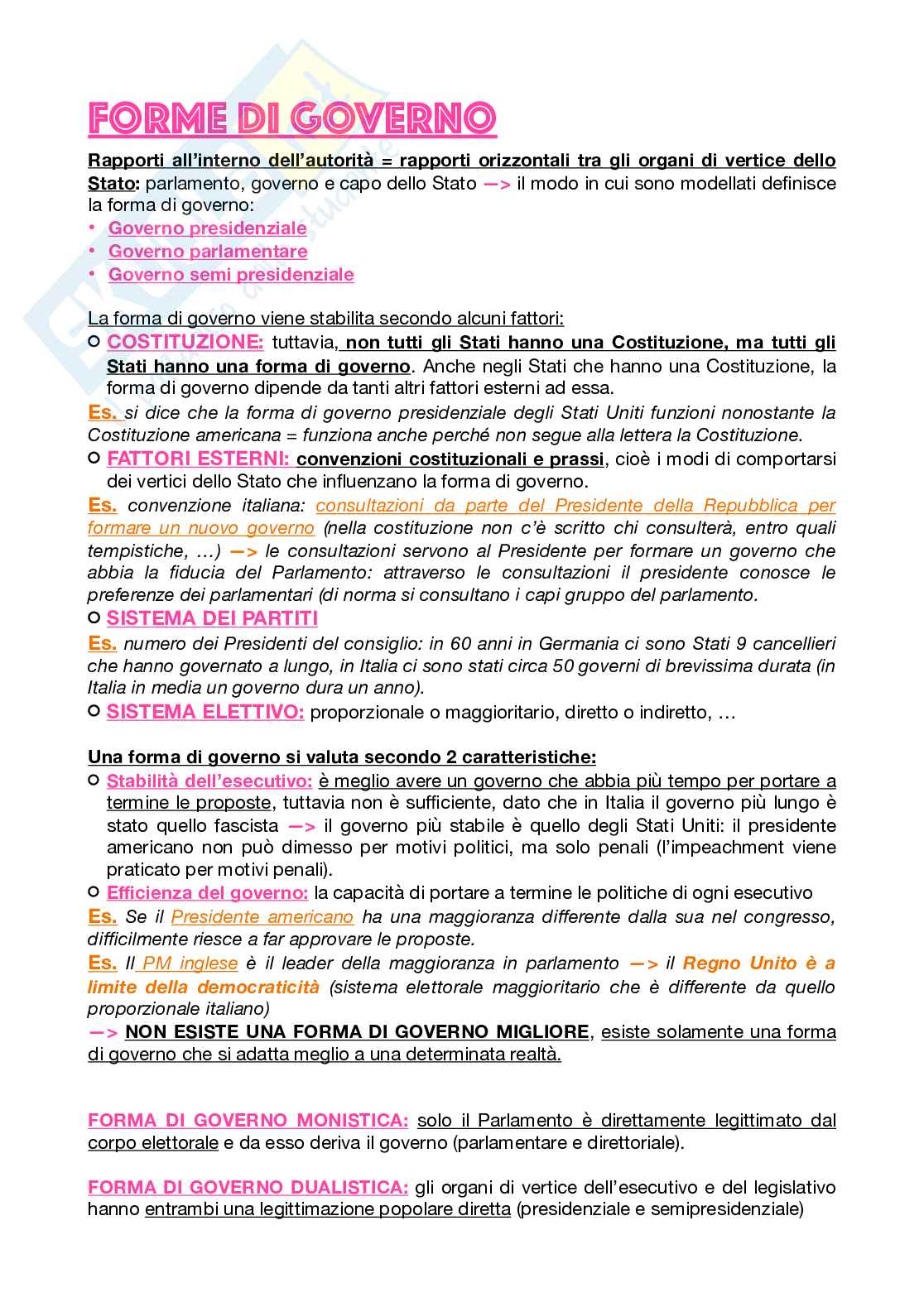 Appunti di diritto costituzionale - Le forme di governo