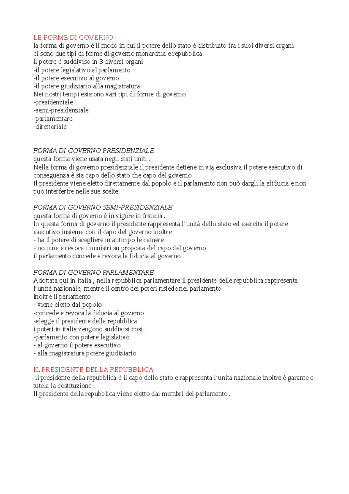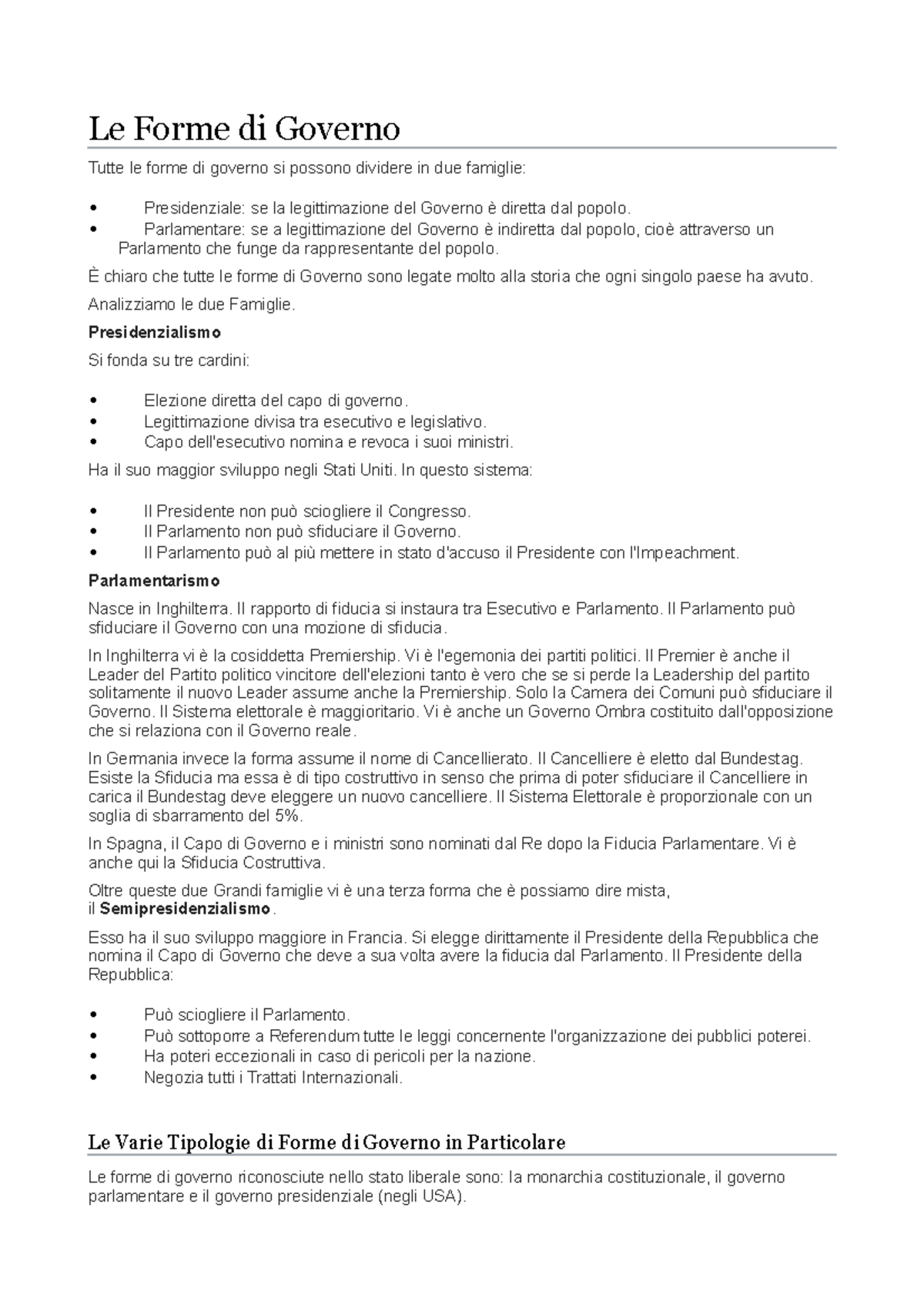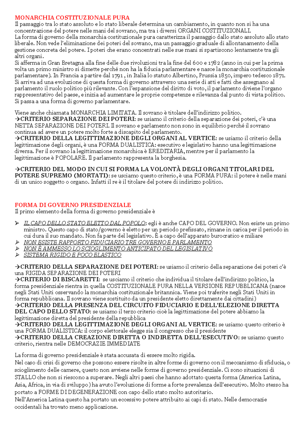 Appunti di diritto costituzionale - Le forme di governo