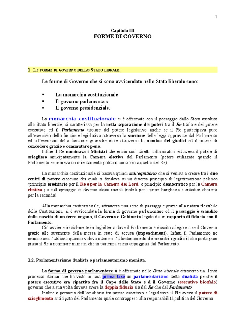 Cap III Forme Di Governo | PDF