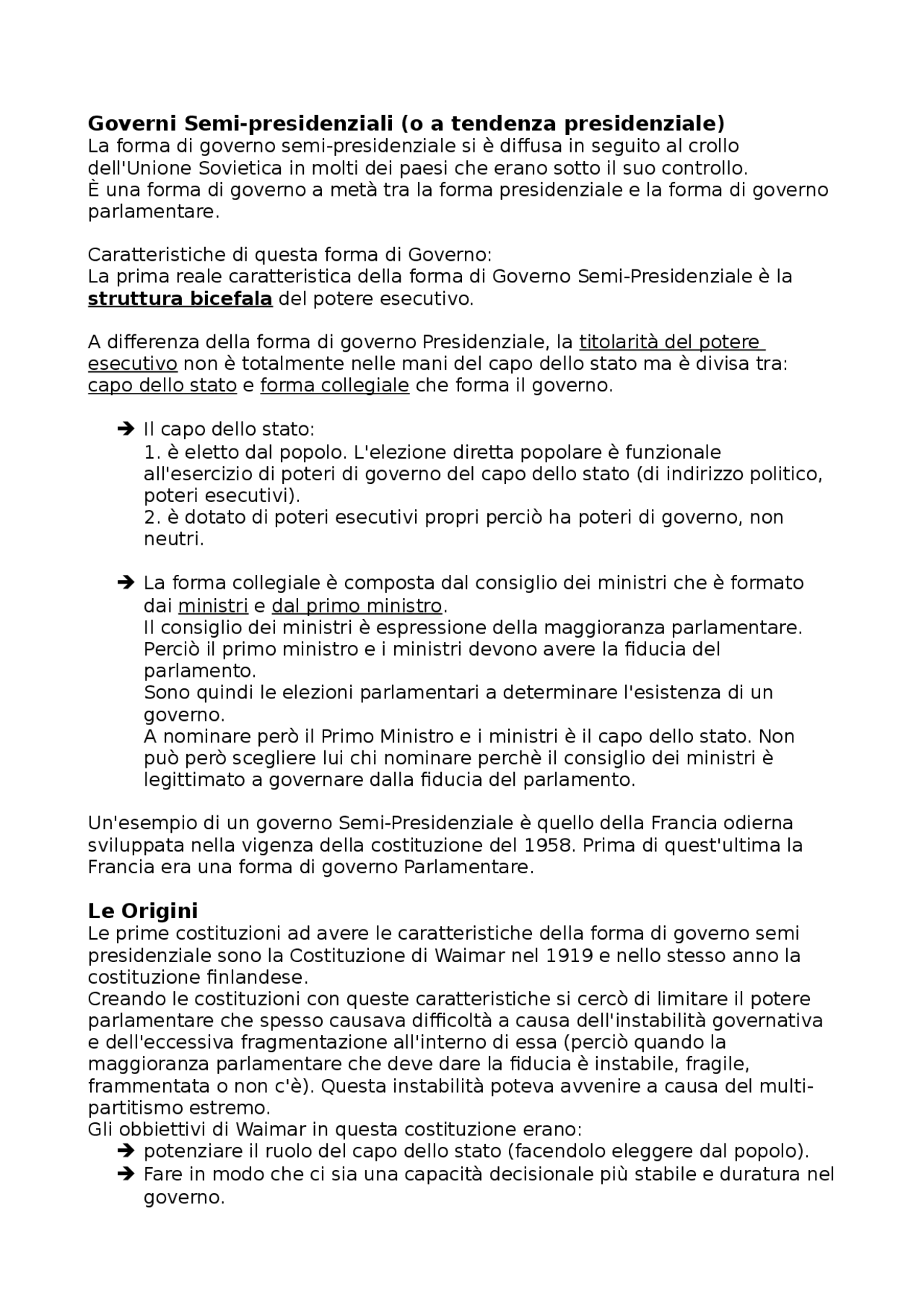 Forma di Governo Semi-Presidenziale | Appunti di Diritto Costituzionale Comparato | Docsity