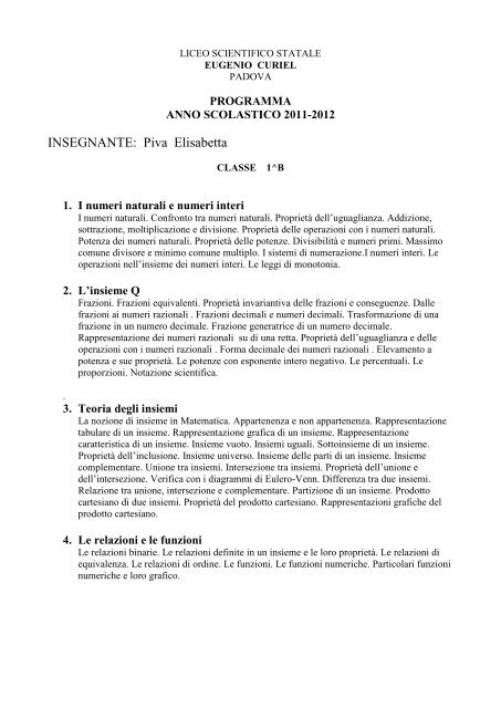 INSEGNANTE: Piva Elisabetta - E. Curiel