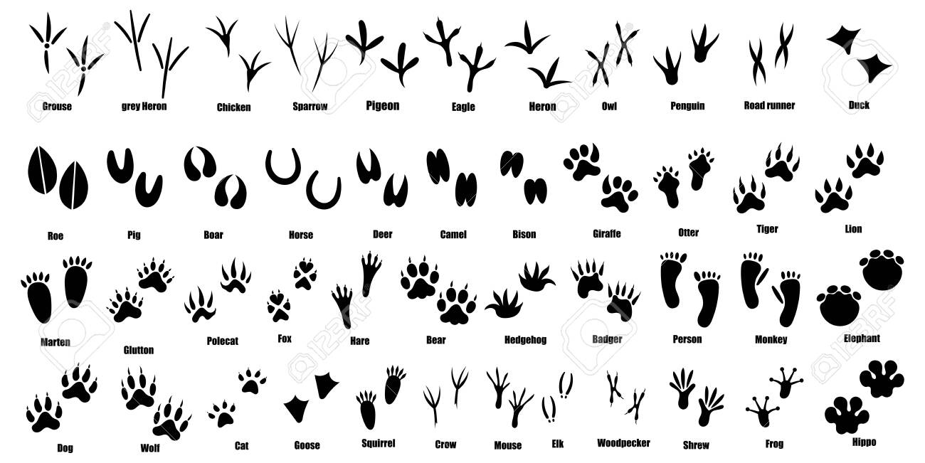 Impronta Animale Segni Di Zampe Di Animali Uccelli E Rettili Sagome Delle Zampe Degli Animali Selvatici Mammiferi Che Camminano Tracce Di Zampe Illustrazione Vettoriale - Immagini vettoriali stock e altre immagini di
