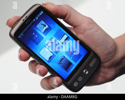 Un archivo imagen de fecha 1 de marzo de 2010 muestra el nuevo smartphone HTC Desire en el CeBIT stand de Vodafone en Hanover, Alemania. El teléfono móvil se suministra con el