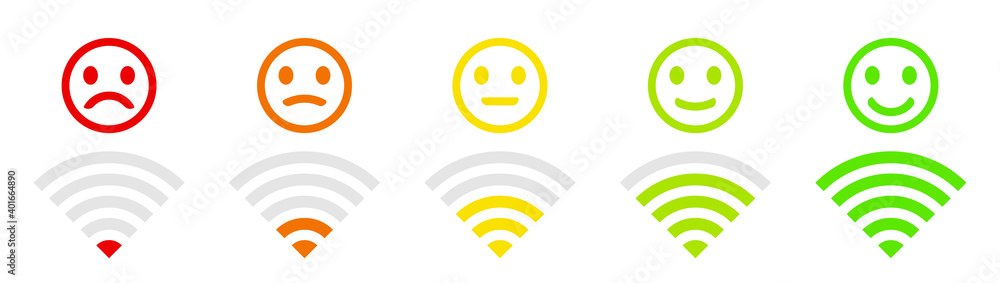 Wireless and wifi icon. Wi-fi signal symbol. Internet connection. Remote internet access collection - Modern vector. Degree satisfaction with feelings. Stock Vector | Adobe Stock
