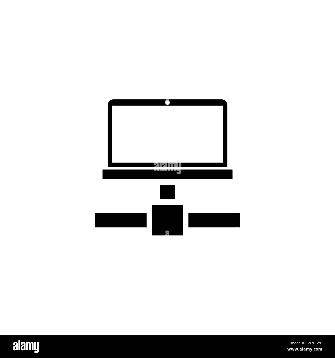 Rete di computer portatile, connessione Internet. Piatto icona Vettore illustrazione. Semplice simbolo nero su sfondo bianco. Rete di computer portatile, connessione Internet segno del modello di progettazione per il web e mobile