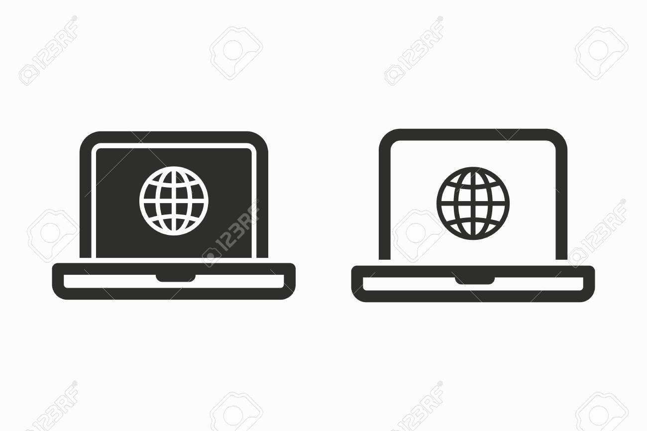 Icona di computer portatile, desktop, computer con concetto di World Wide Web icona di internetin nero semplice design su uno sfondo isolato. Vettore EPS 10 Immagine e Vettoriale - Alamy