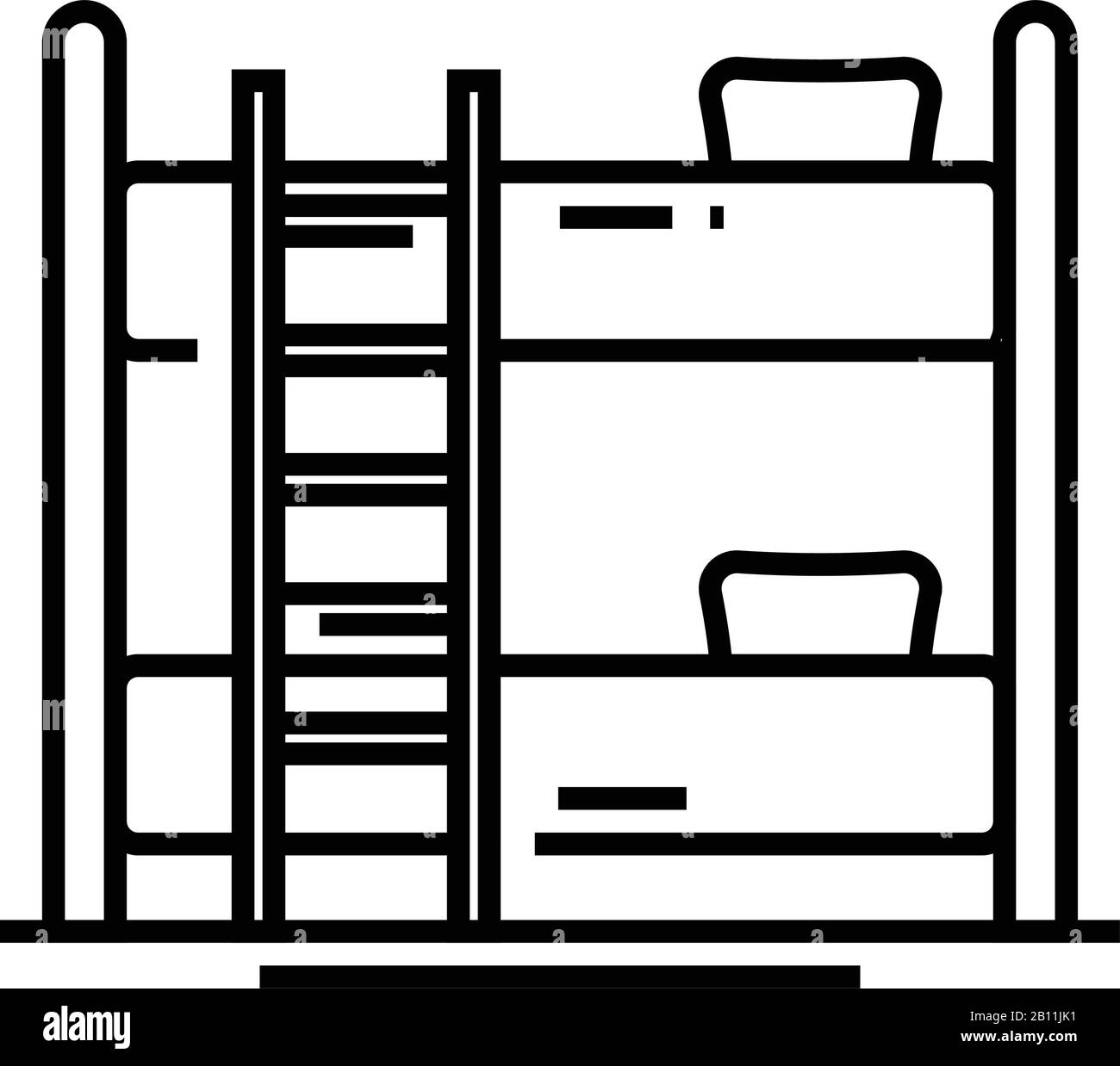 Icona della linea del letto a castello, simbolo concettuale, illustrazione vettoriale del contorno, simbolo lineare Immagine e Vettoriale - Alamy