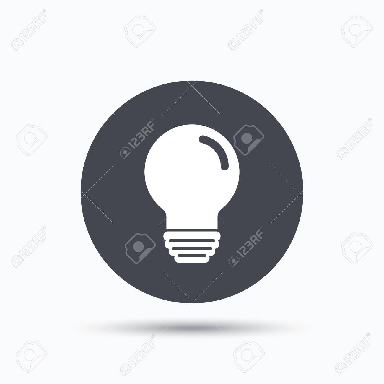 SVG, Vettoriale - Icona Della Lampadina. Segno Della Lampada Simbolo Della Tecnologia Di Illuminazione. Pulsante Web Piatto Con Icona Su Sfondo Bianco. Pulsante Rotondo Grigio Con Ombra. Vettore. Image 60352082