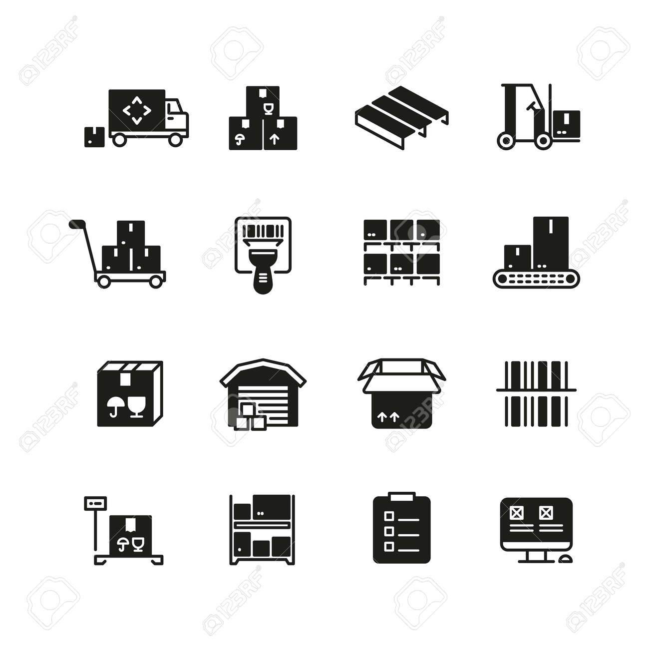 SVG, Vettoriale - Icone Vettoriali Di Magazzino Industriale, Logistica E Gestione Della Distribuzione. Illustrazione Delle Icone Del Servizio Di Consegna E Stoccaggio. Image 166830648