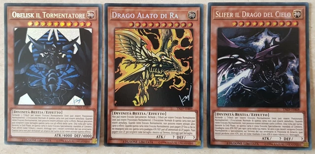 Yu-Gi-Oh le 3 divinità egizie drago alato di ra obelisk Slifer del cielo ita nm | eBay
