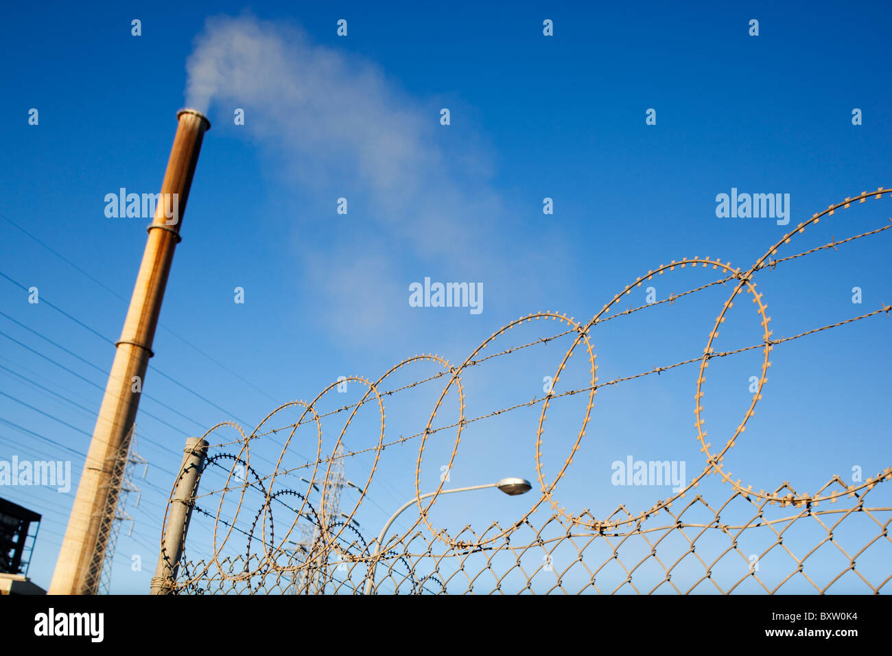 Australia Meridionale Porto Augusta linee elettriche ad alta tensione e il fumaiolo in centrali a carbone Augusta Power Station da filo spinato Foto stock - Alamy
