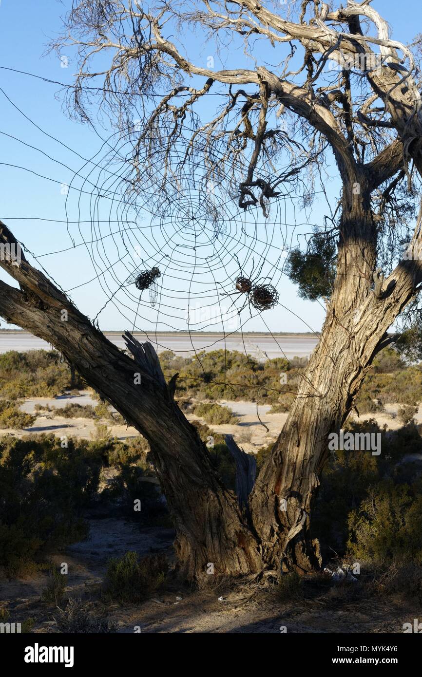 La land art di una spider web realizzato in filo, Lago Monger, Karara Rangeland Park, Western Australia | Utilizzo di tutto il mondo Foto stock - Alamy